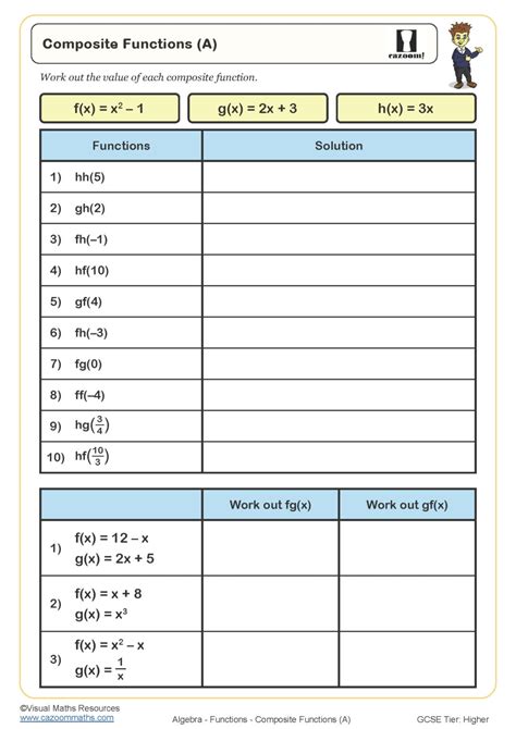 If f ( x) 9x 9. If 2f ( x) 33x 5 and g( x) x , find f d g 3 and gd f 2. Web composite function worksheet evaluate each composite value 1. Web the easy level worksheets introduce the concept of composition of two or three functions, evaluating functions, offering. If f ( x) 9x 9.