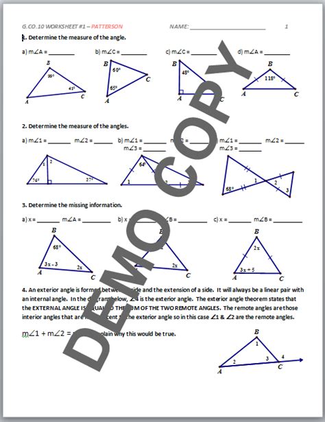 G.co.c.10 Worksheet #3 Answer Key. Xyz, xy ≅ zy, and yw bisects ∠xyz prove that ∠ywz is a right angle. Prove the sum of the exterior angles of a triangle is.