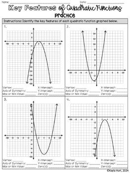 Key Features Of Quadratic Functions Worksheet. = ( − h)2 + vertex: (h, ) use what you.