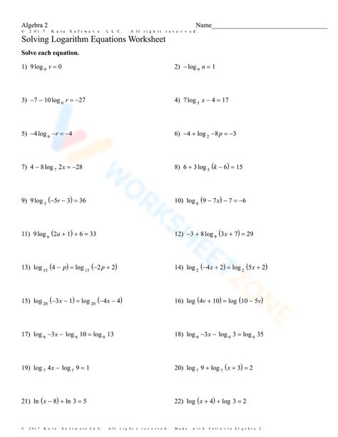 50 Logarithmic Equations Worksheet With Answers