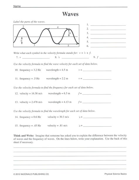 8 Best Images of Light And Sound Waves Worksheets Labeling Waves